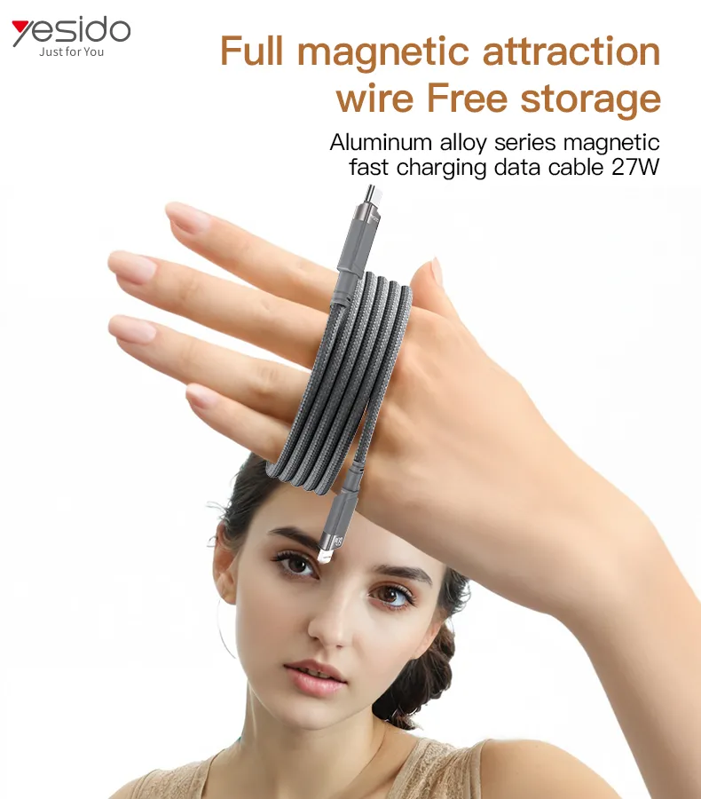 کابل تایپ سی به لایتنینگ یسیدو مدل CA172L: شارژ سریع 27 واتی با طراحی مگنتی