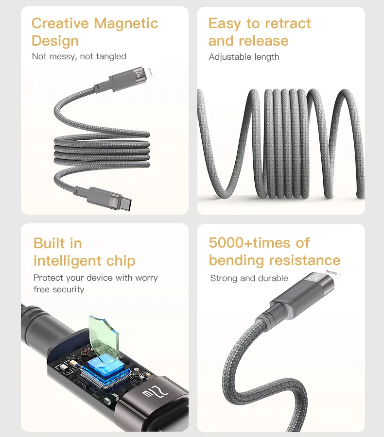 - مدل: CA172L کابل تایپ سی به لایتنینگ 27 وات با خاصیت مغناطیسی