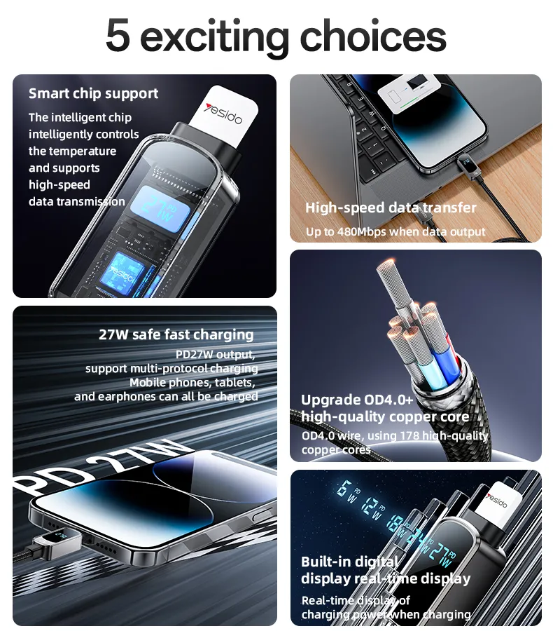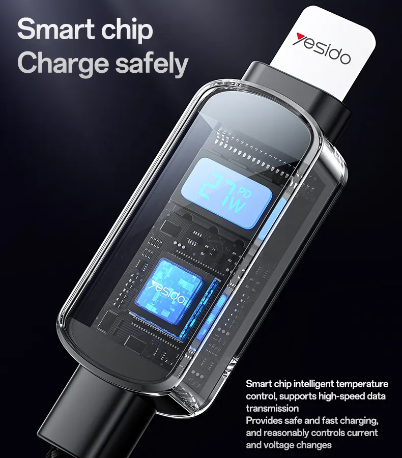 کابل تایپ سی به لایتنینگ یسیدو مدل CA180: شارژ سریع 27 واتی با نمایشگر دیجیتال