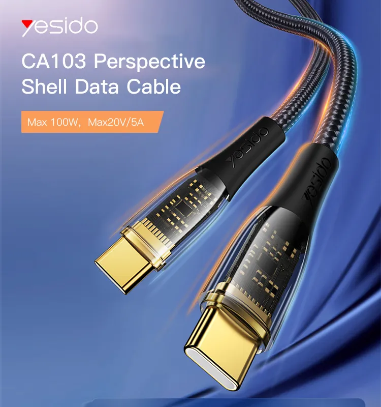 خرید کابل شارژ سریع تایپ سی به تایپ سی یسیدو مدل CA103: شارژ 100W با دوام بالا و انتقال داده سریع برای گوشی