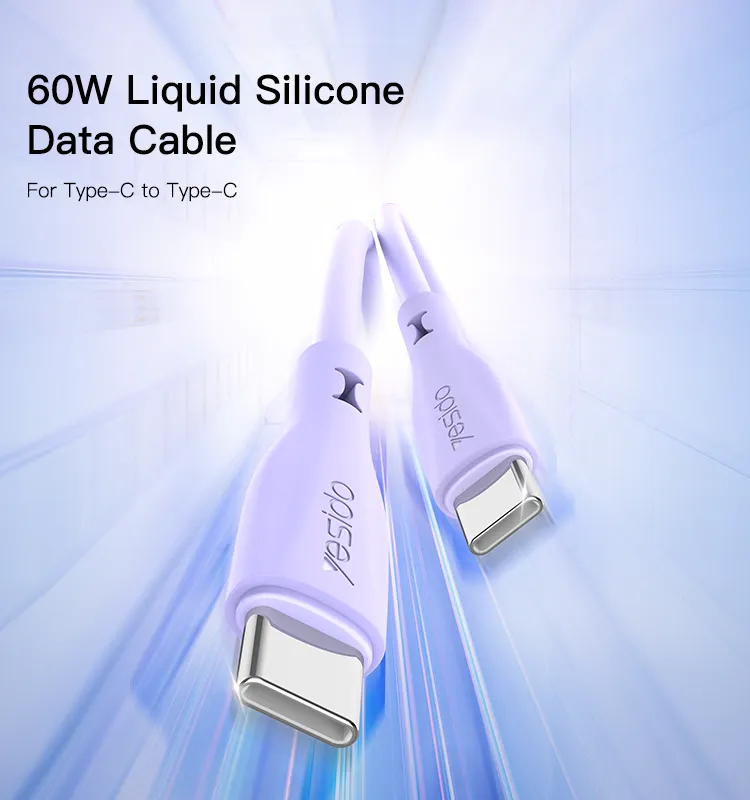 کابل دوسر تایپ سی یسیدو CA152: شارژ سریع 60 واتی با طراحی سیلیکونی مایع و رنگبندی جذاب