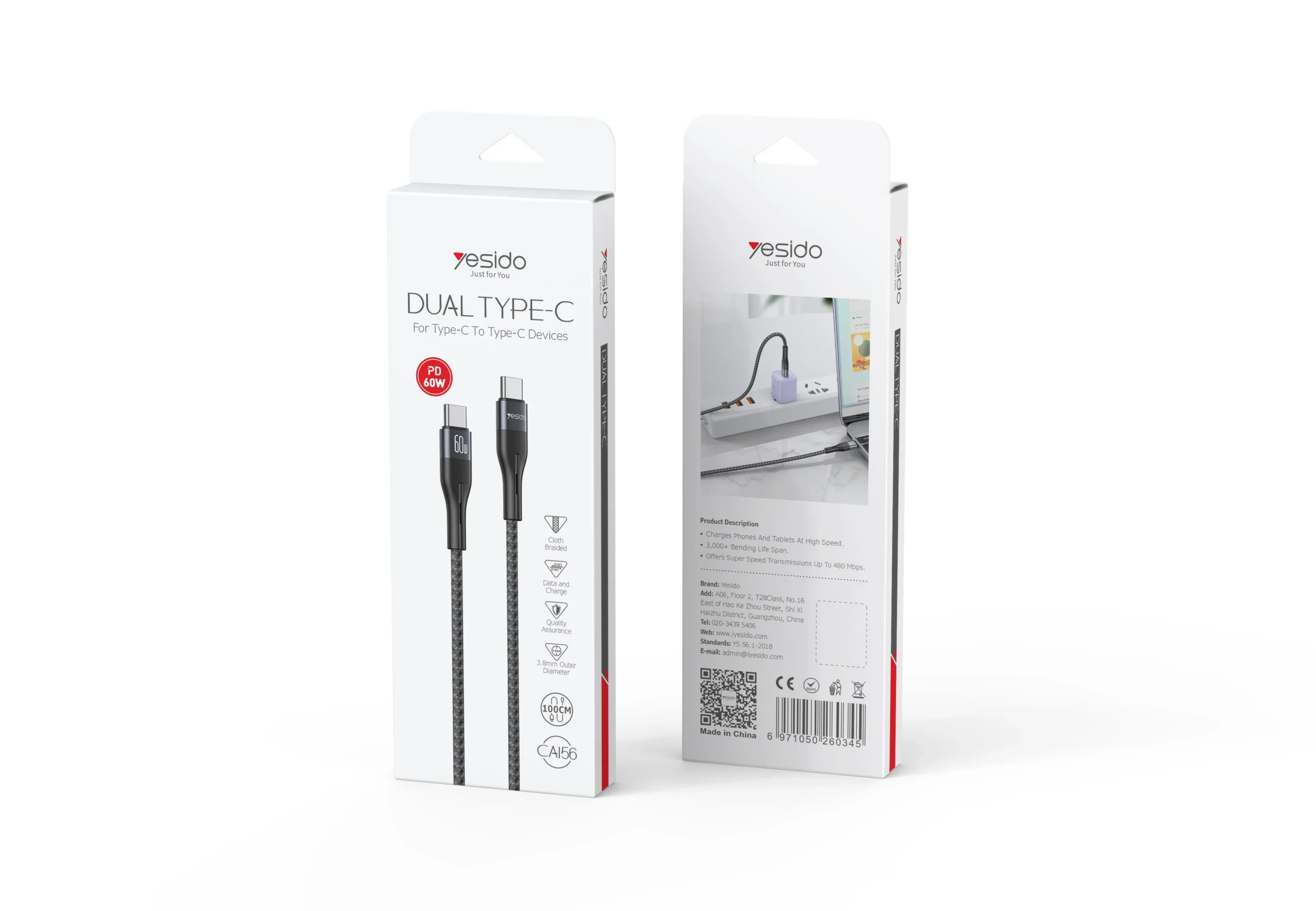 کابل دوسر تایپ سی یسیدو مدل CA156: شارژ سریع 60 واتی با طراحی نایلونی مقاوم