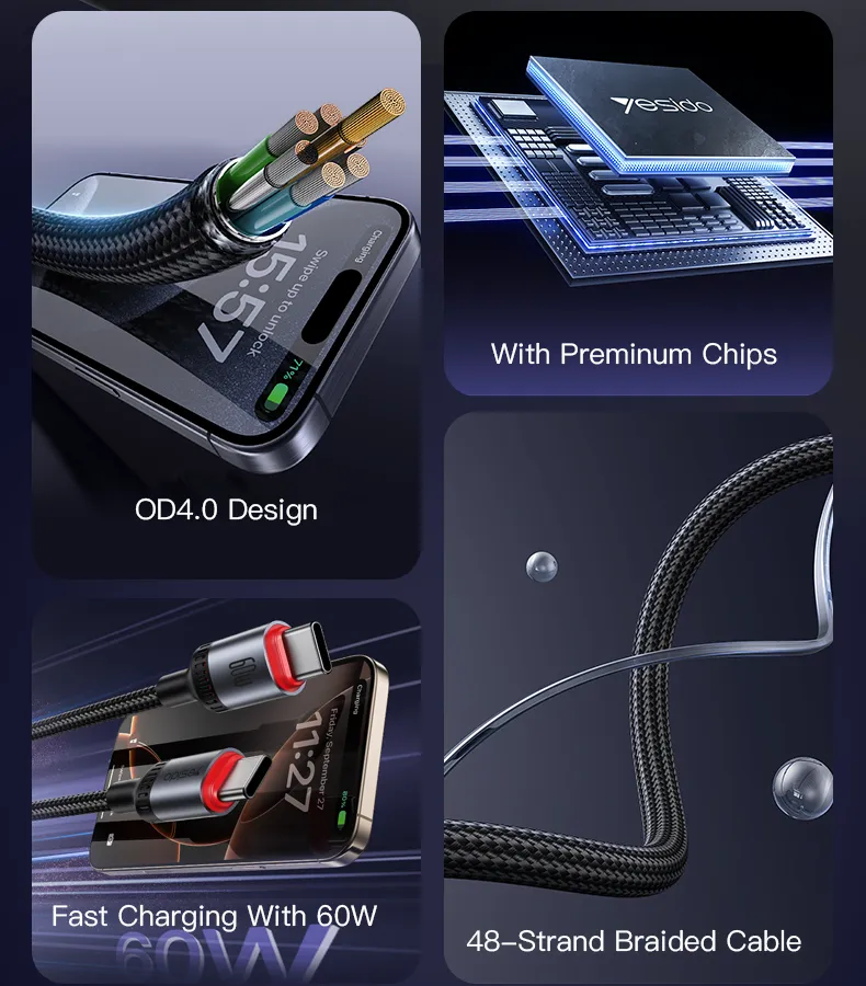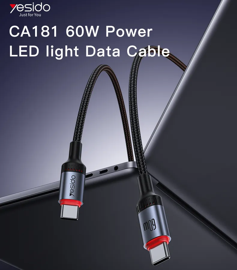 کابل شارژ تایپ سی به تایپ سی یسیدو مدل CA181: شارژ سریع 60 واتی با کیفیت بینظیر
