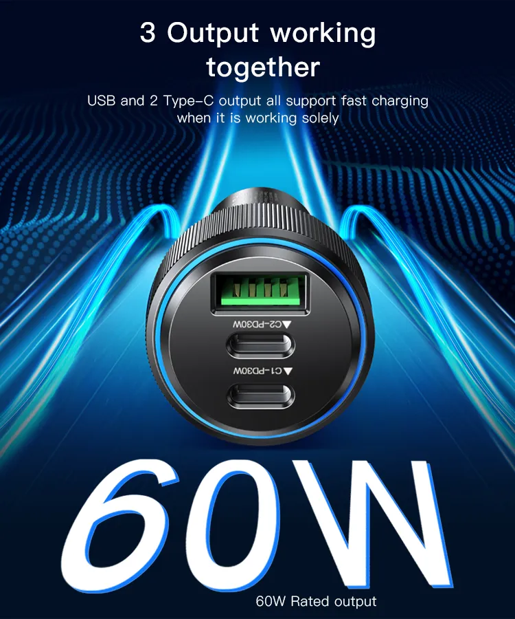 مدل: Y50 شارژر فندکی سریع 60 وات با سه پورت