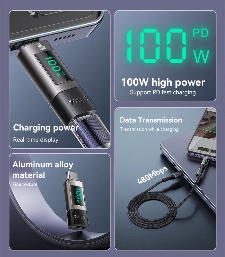 مبدل تایپ سی به تایپ سی یسیدو مدل GS24: اتصال سریع و قدرتمند با توان 100 وات