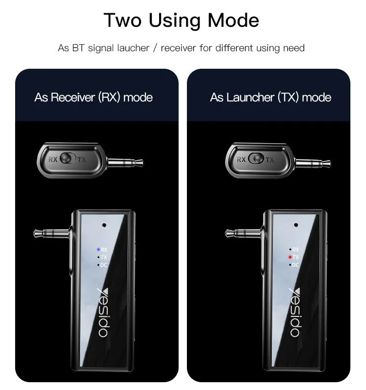 • دو حالت فرستنده و گیرنده: امکان استفاده به‌عنوان گیرنده (BT to AUX) یا فرستنده برای اتصال بی‌سیم به دستگاه‌های مختلف.