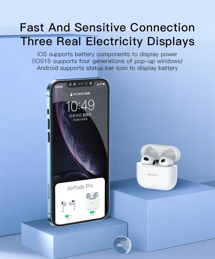 هندزفری بی سیم بلوتوثی یسیدو مدل BT11، یک ایربادز پیشرفته با طراحی داخل گوش (In-ear) است که برای ارائه کیفیت صدای استثنایی و راحتی بینظیر طراحی شده است. این هندزفری با بلوتوث نسخه 5.1، اتصالی پایدار و سریع تا برد 10 متر فراهم میکند و با پشتیبانی از پروتکلهای HSP، HFP، A2DP و AVRCP، تجربهای روان در موسیقی، مکالمه و گیمینگ ارائه میدهد. BT11 با رنگ سفید شیک و طراحی ارگونومیک، انتخابی ایدهآل برای استفاده روزمره، ورزش و سفر است.