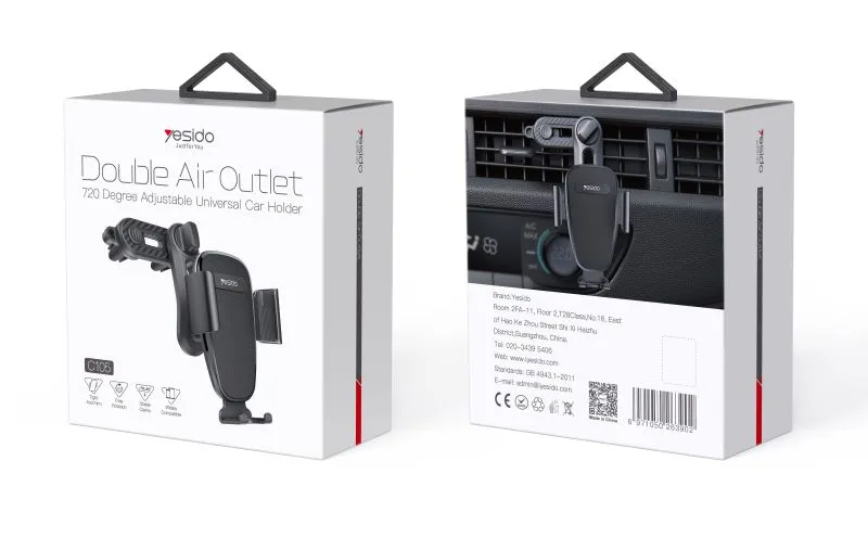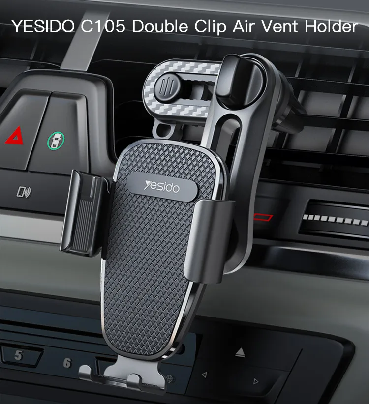 پایه نگهدارنده گوشی موبایل یسیدو مدل C105: پایه نگهدارنده موبایل با گیره فنری برای دریچه هوای خودرو