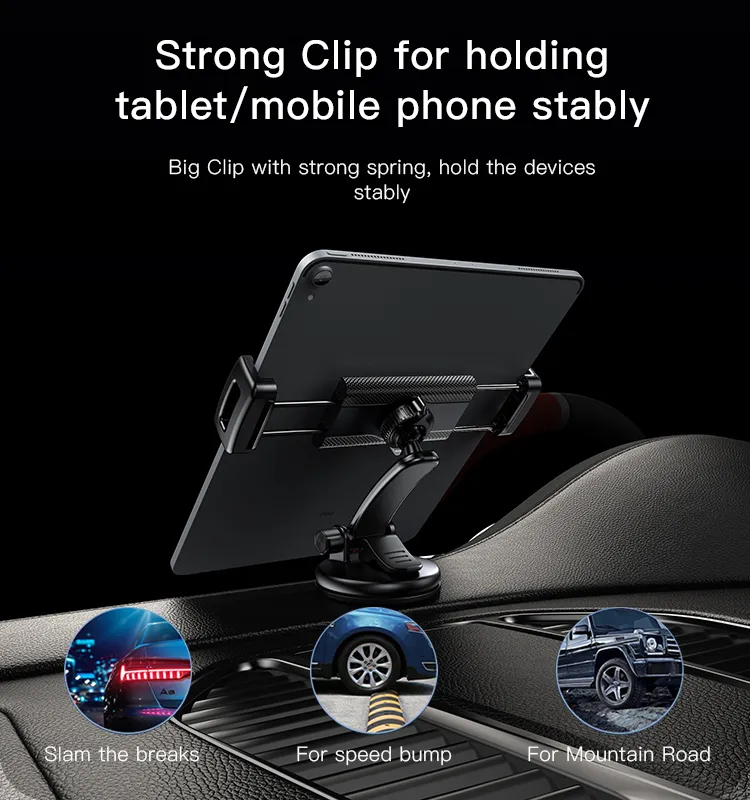 - نصب چندمنظوره: مجهز به مکنده قوی برای نصب روی داشبورد خودرو، شیشه جلو یا سطوح صاف مانند دیوار.