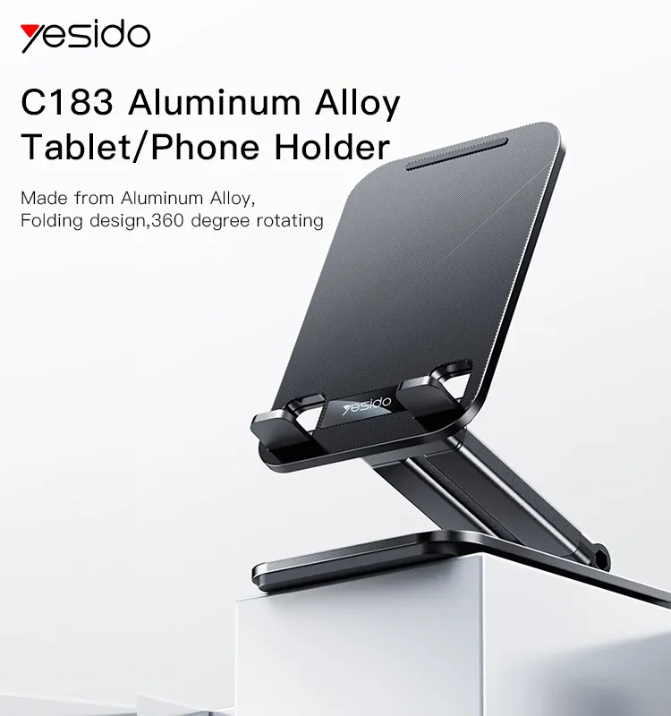 پایه نگهدارنده و هولدر تبلت یسیدو مدل C183 با طراحی تاشو و ساخته شده از آلیاژ آلومینیوم، انتخابی ایدهآل برای استفاده روزمره از گوشیهای هوشمند و تبلتها است. این هولدر با کیفیت بالا و قابلیت چرخش 360 درجه، امکان تنظیم زاویه دید دلخواه را فراهم میکند و برای استفاده روی میز در خانه، محل کار یا هنگام سفر بسیار مناسب است.