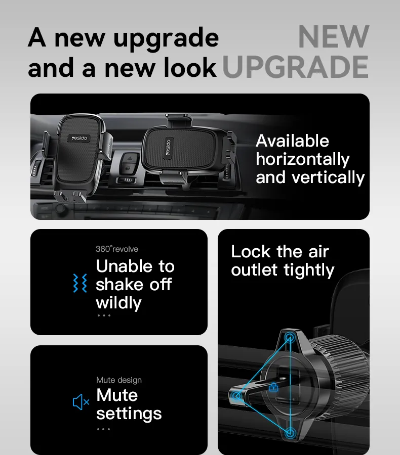 هولدر گوشی یسیدو مدل C241: پایه نگهدارنده موبایل کلیپ فنری دریچه هوا با نصب آسان