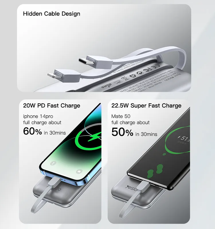 • کابل‌های داخلی Type-C و Lightning: سازگاری با انواع دستگاه‌های اپل و اندروید بدون نیاز به کابل جداگانه.