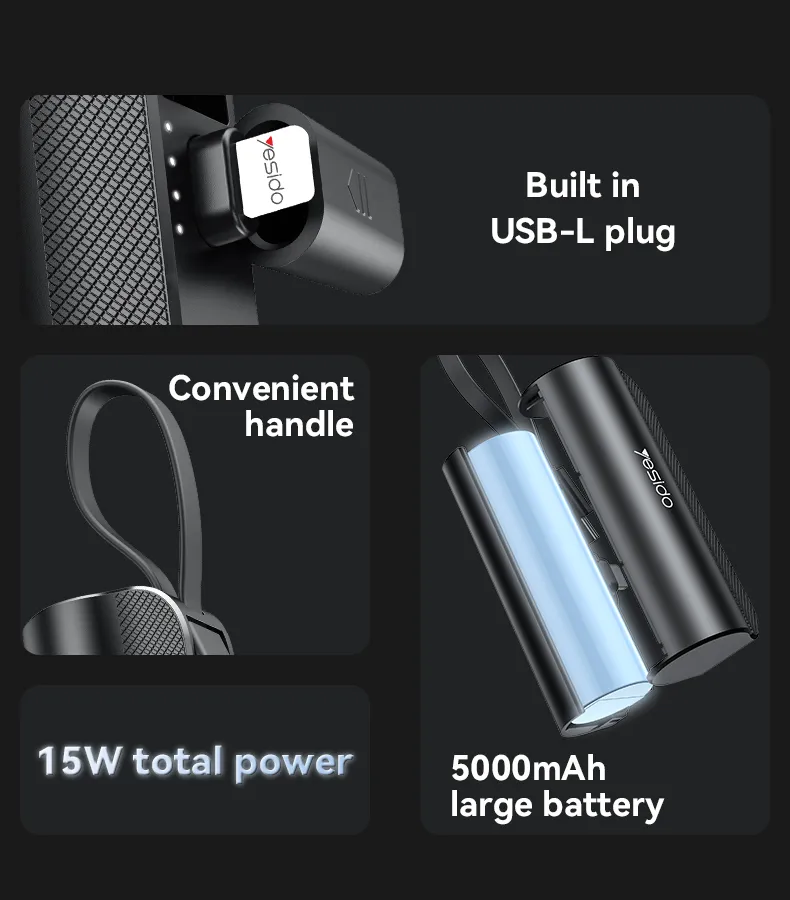 پاوربانک یسیدو مدل YP68 با ظرفیت ۵۰۰۰ میلی آمپر و طراحی فوق‌العاده کوچک و سبک، انتخابی ایده‌آل برای شارژ سریع و راحت دستگاه‌های شما در هر زمان و مکان است. این پاوربانک با کیفیت بالا، مناسب برای گوشی‌های هوشمند، تبلت‌ها و سایر دستگاه‌های سازگار با پورت‌های Type-C و USB-L است.